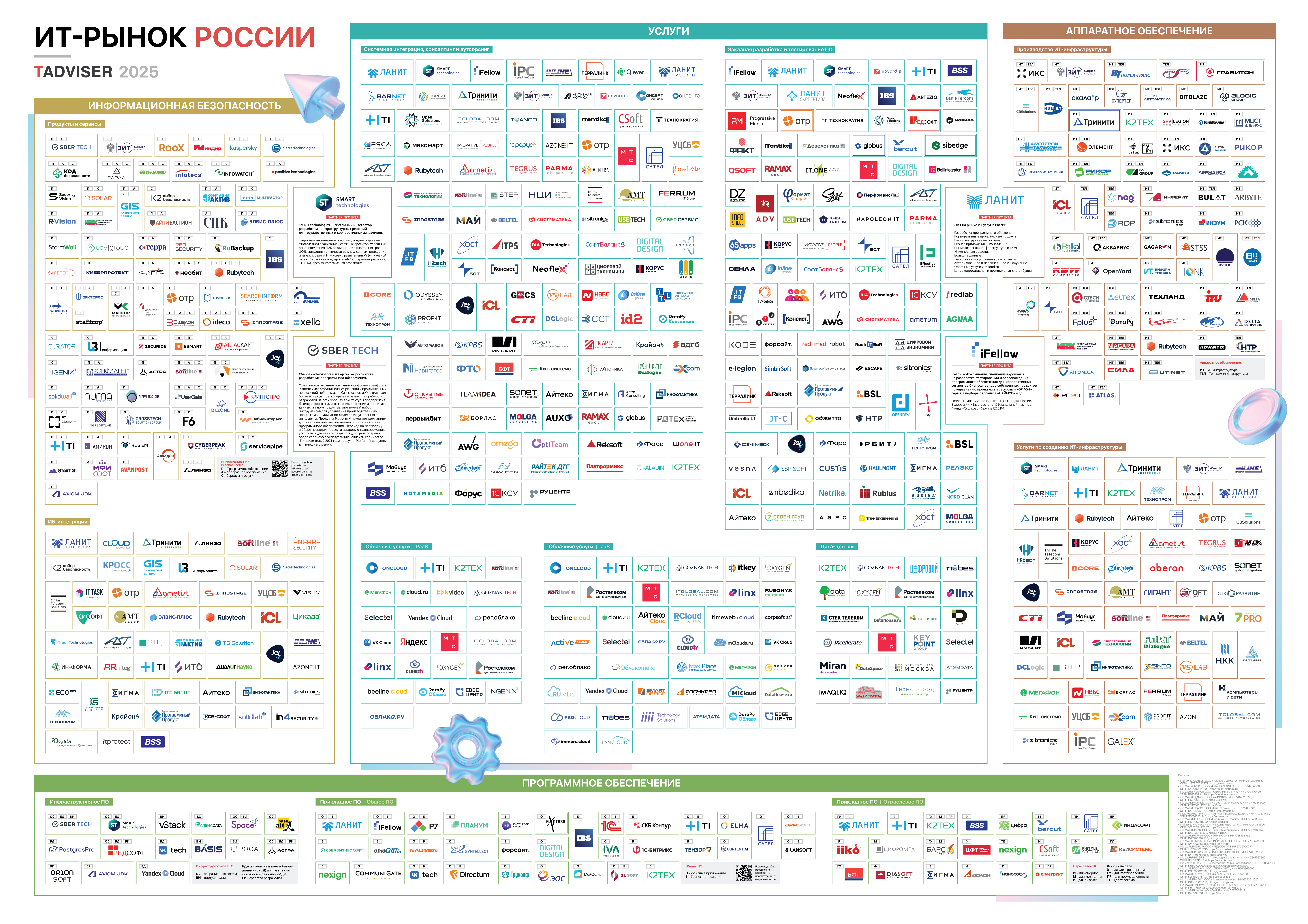 Карта российского ИТ-рынка от Tadviser — это масштабное ежегодное исследование, которое помогает ориентироваться в ландшафте отечественной IT-индустрии. В него включаются компании, продемонстрировавшие заметное влияние на рынок, инновационность и динамику развития.